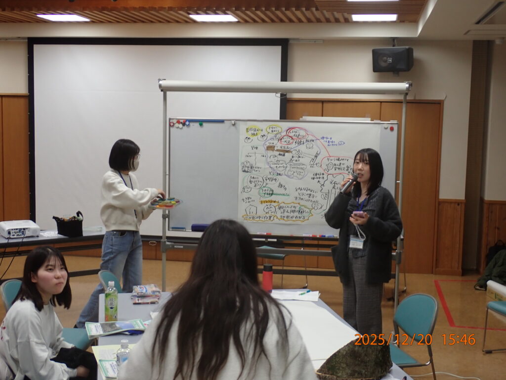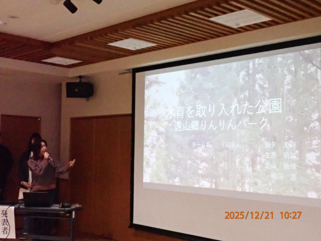 今回は鳥獣保護管理と森林資源管理をテーマに、遠山郷における現状や課題を整理し、その解決に向けたアイディアを大学生が提案しました。
