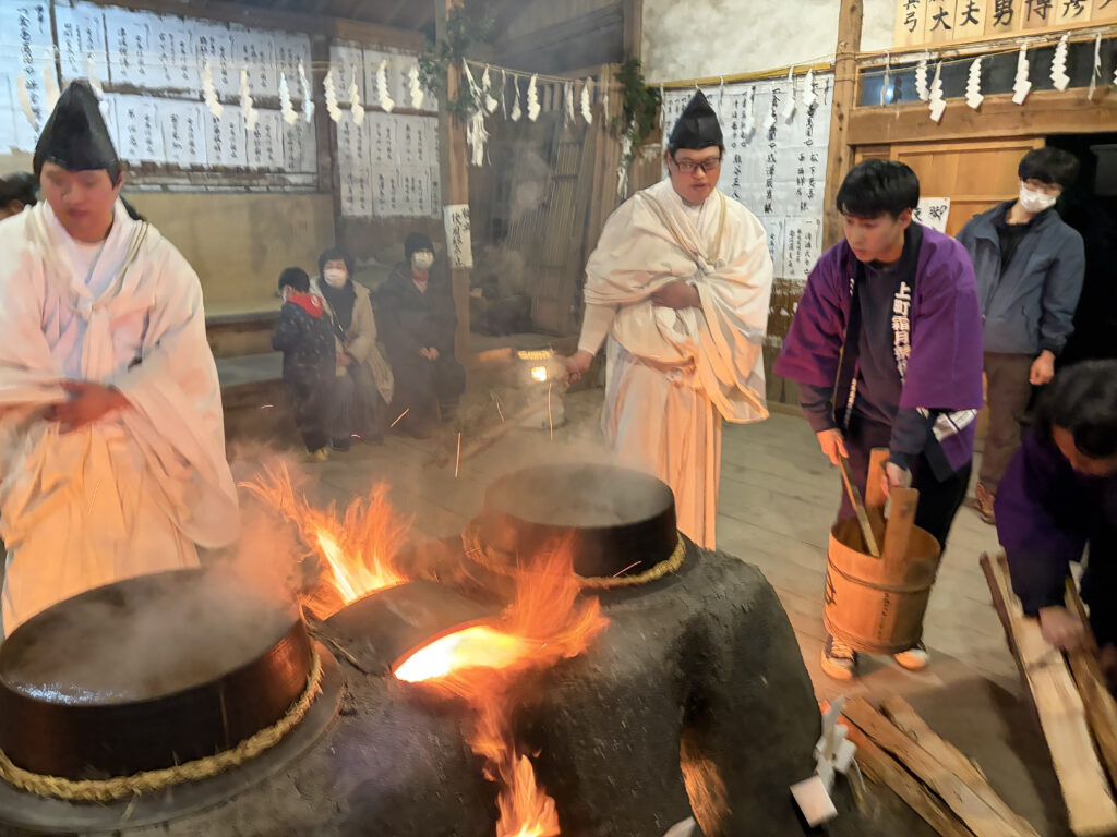 今年も遠山郷霜月まつりに参加させていただきました。窯への水入れや火入れ、寄進者名の貼り出しや配膳などのお手伝いをしながら、祭りの場を支える一員として関わらせていただきました。